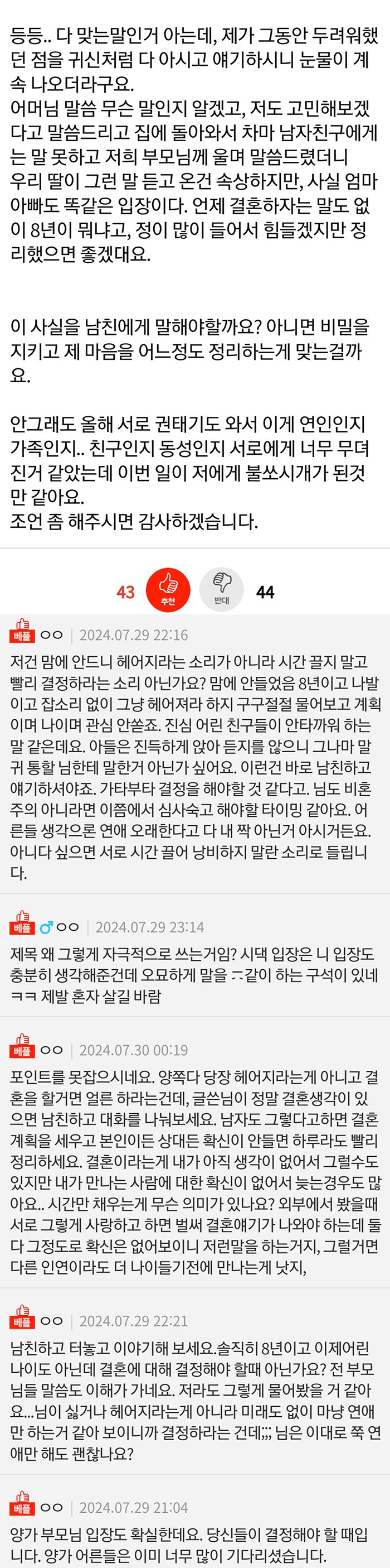 8년째 장기연애중인 여자의 고민